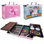 Let your child explore their creativity with this beautiful Unicorn Themed Deluxe Art Set! Packed inside a strong and stylish aluminum suitcase, this set includes crayons, color pencils, sketch pens, watercolor paints, brushes, palettes, and more! Perfect for school projects, drawing practice, hobby art, and gift purposes. Easy to carry anywhere – travel, picnic, school, or home.